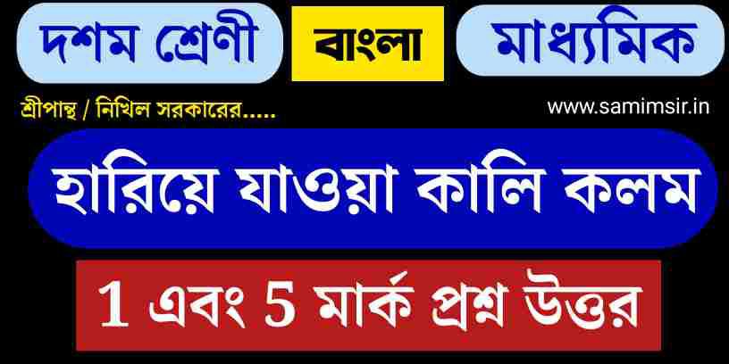হারিয়ে যাওয়া কালি কলম প্রশ্ন উত্তর // class 10 hariye jawa kali kolom question answer // bengali wbbse